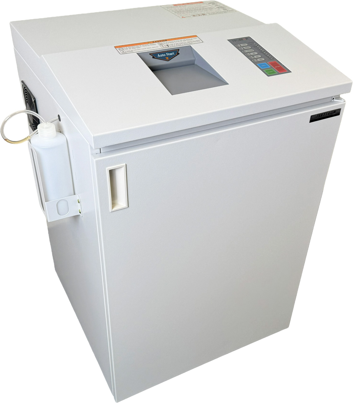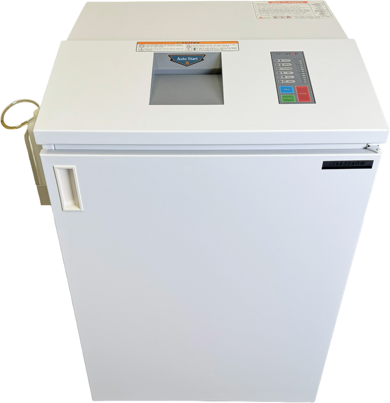 The INFOSTOP IS8714OM is a High Security Optical Media shredder that meets “Top Secret” requirements with a 850 disc per hour processing capacity.
